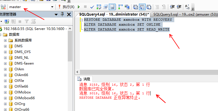 今天遇到一個非常詭異的現(xiàn)象,xxmobox數(shù)據(jù)庫還原后提示成功,但這個數(shù)據(jù)庫無法被dns服務(wù)鏈接。經(jīng)過分析發(fā)現(xiàn) xxmobox數(shù)據(jù)庫狀態(tài):關(guān)閉,正常