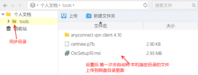 3)設(shè)置這個網(wǎng)盤目錄(tools)與本機電腦上指定目錄進行文件同步(本機如:c:\tools)