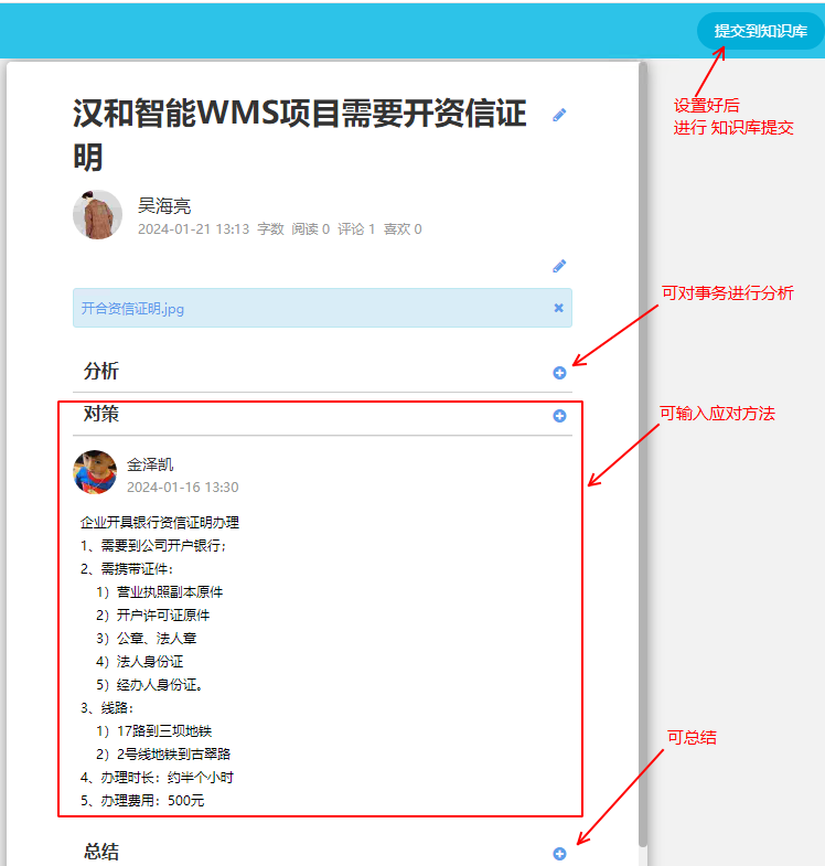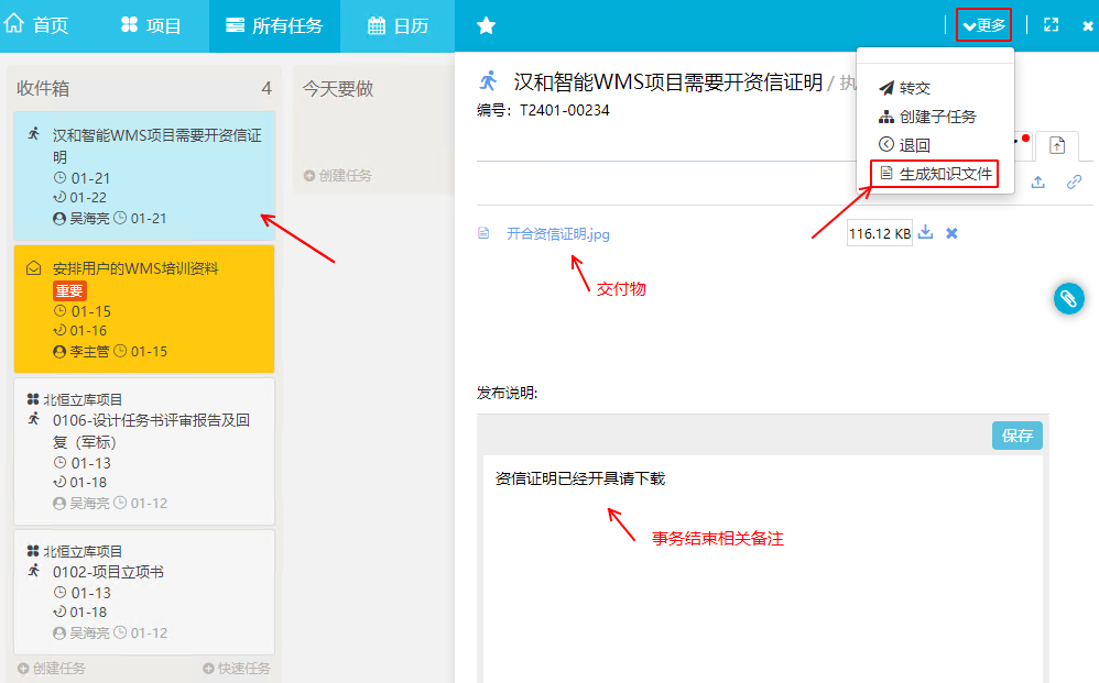 任務交付(資信證明)上傳后,任務提交后完成。我們總結生成知識文件