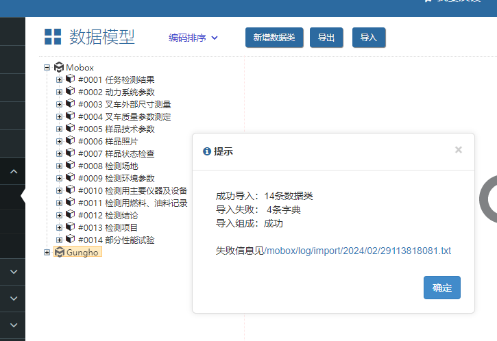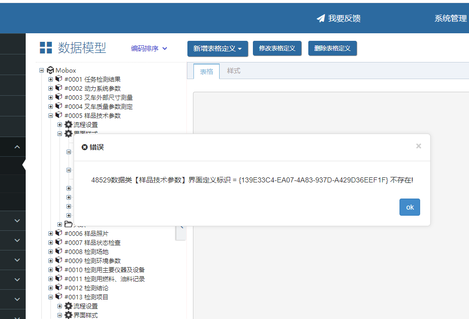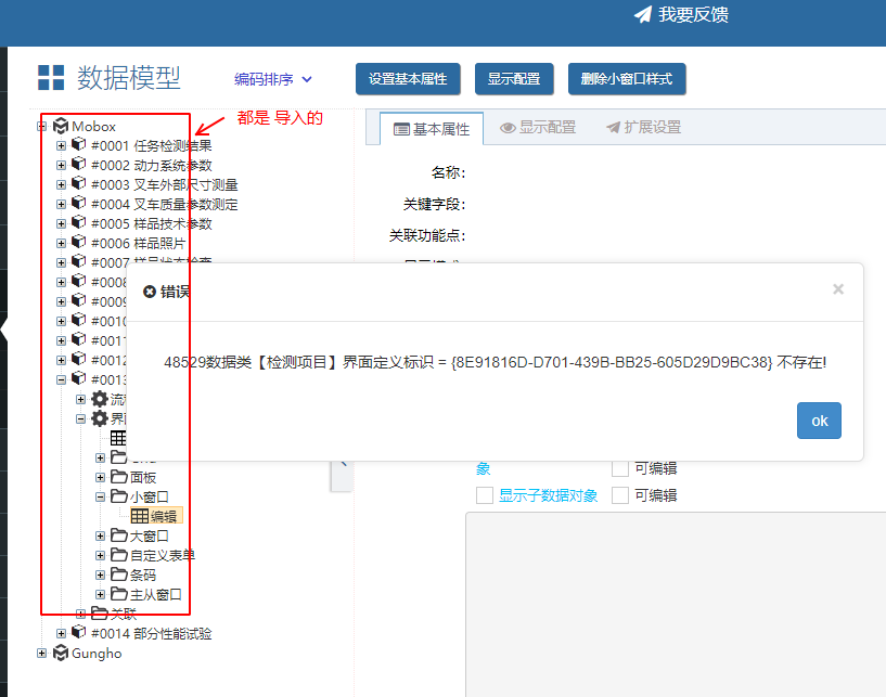 Mobox2數據模型導入后-小窗口或grid點擊報錯(不存在) 2024/02/29 分類:產品中心 問題中心 602 mobox2數據模型導入后 (導入后 提示成功,并沒有提示錯誤) 若點擊模型對象的小窗口,或grid 系統提示錯誤 如 小窗口點擊后報錯 或 grid 點擊后報錯 解決方法 將數據對象重新導入一次 導入后,再次提示 成功 ,如 之后,再點擊前面出錯的小窗口或grid 就正常了 標簽:問題 上一篇: Gungho項目管理系統界面自定義配置 下一篇: Gungho項目擴展屬性二次開發的實現過程